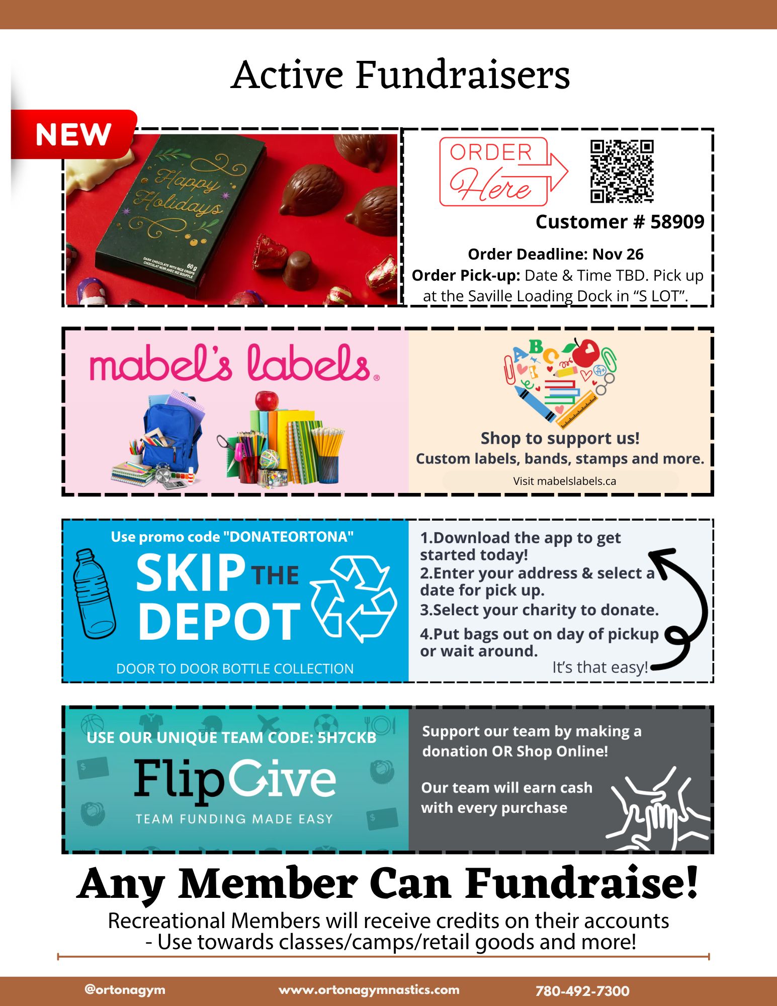 Club Sponsored Fundraisers: events operated through Ortona with support from the members, where funds generated are split between the members and the club.